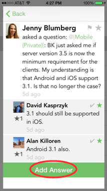 When you tap on a message or question in your stream you will be taken to the detail screen, where you can then Comment or Answer.