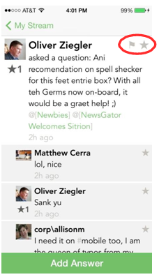Once a question you’ve posted to the stream has an answer you approve of, you can mark it so others will see the accepted answer.