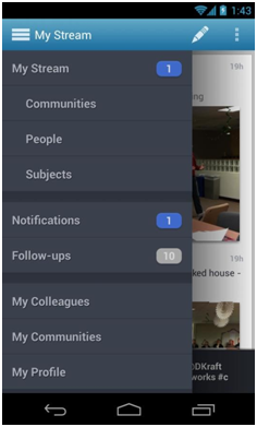 Navigating around the Aurea Social app is primarily done from the sidebar menu, accessed by either the menu button in the top left-hand corner of the screen, or from swiping from left to right.