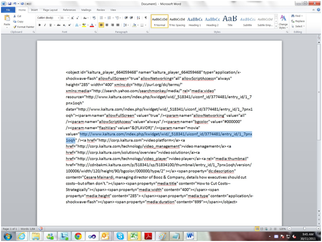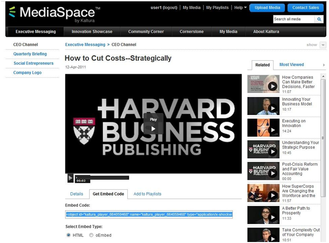 1. Go to your Kaltura Media Space implementation and copy the embed code.