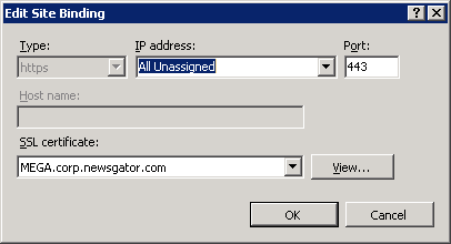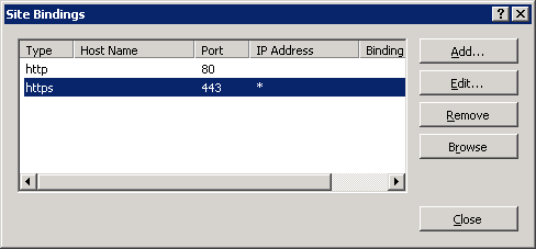 To do this, you may need to manually add an SSL certificate to the IIS servers using the Bindings configurations: