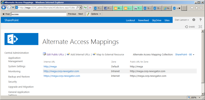 For example, the following screenshot demonstrates the AAM mapping for the site http://mega: